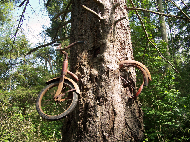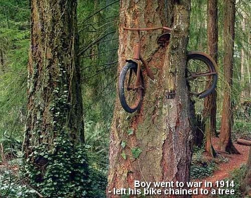 Berniukas išėjo į karą ir paliko prie medžio prirakintą dviratį