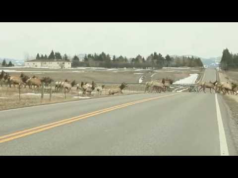 Kaimenė elnių kerta kelią