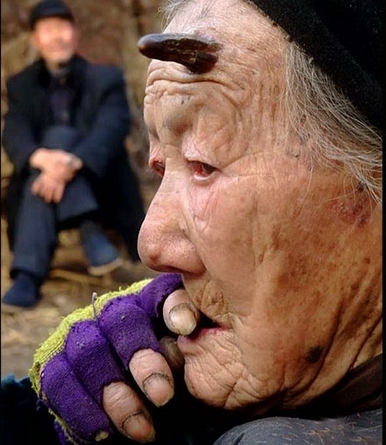 Šimtametė močiutė Zhang Ruifang gali girtis ne tik garbingu amžiumi bet ir… ragu savo kaktoje.